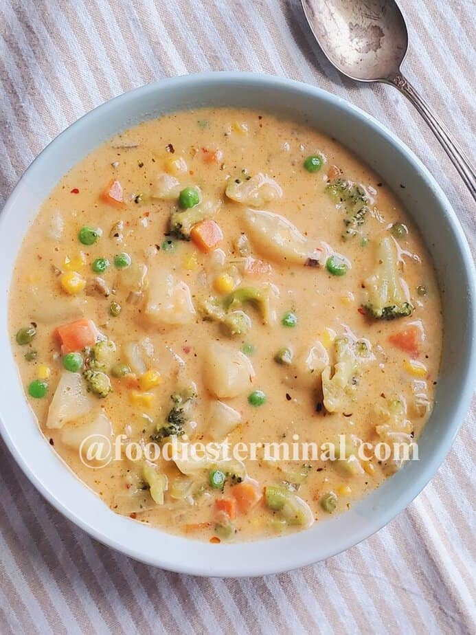 - Serve: Serve the cheesy veggies soup with your favorite toppings like grated cheese, crushed black pepper, and chili flakes.